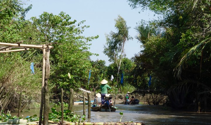 reisestoff: CAN THO_TAG 6. Mitten im Mekong-Delta angekommen. Heute mussten wir schon früh für unseren Ausflug zu den schwimmenden Märkten bereitstehen: Pünktlich um 05.30h wurden wir vom Hostel abgeholt. Sieben Stunden auf dem Mekong und seinen Seitenarmen. Absolut toll. Ngân, unser Guide, hatte ein Faible für Romantik und Botanik. So animierte sie uns zu kitschigen Pärchenfotos, fütterte uns mit allen erdenklichen, teils sehr exotischen Obstsorten, die es auf dem Fluss zu erstehen gab, sowie Blättern von Bäumen und Büschen, über deren Wirkungsweisen wir auch umfangreich informiert wurden, und bastelte aus Palmenblättern – vom Schwert über einen Ring bis zu einem … weiterlesen